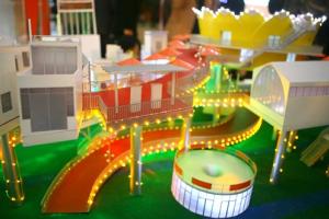 造型亮點:展現城市與鄉村的互動,采用傳統的城市建筑,突出展示木材在現代建筑領域的運用。
